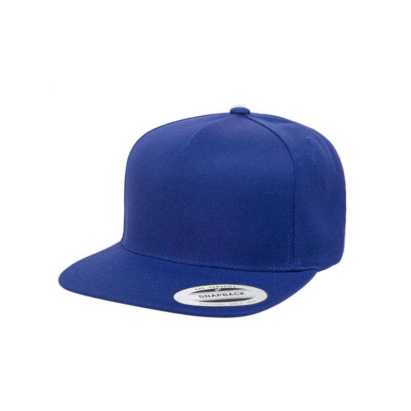Flexfitkeps blå: 5 paneler, böjd skärm med grå underskärm och resår.